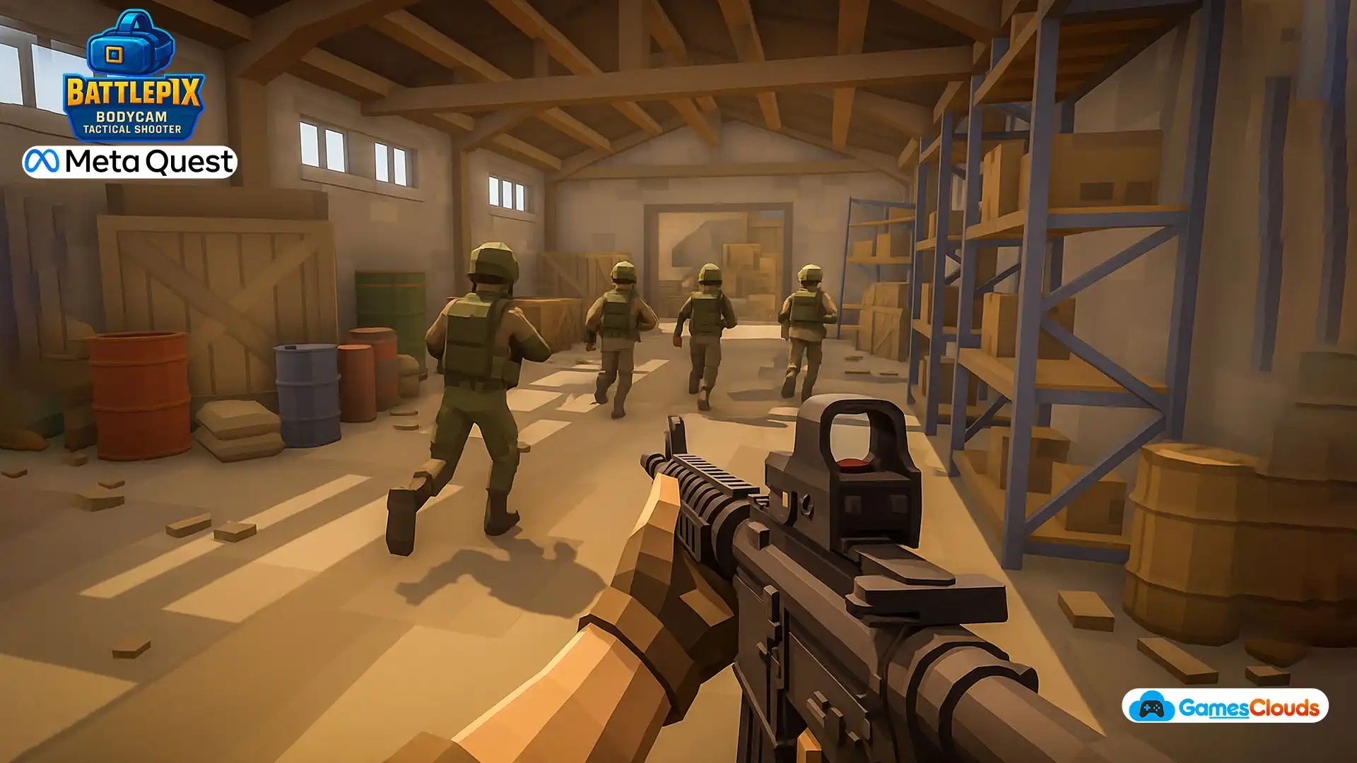 VR BattlePix Bodycam Tactical Shooter delivers a complete, next-gen VR military experience — designed for developers creating realistic bodycam VR shooter games for Meta Quest 2, Quest 3, or PC VR.