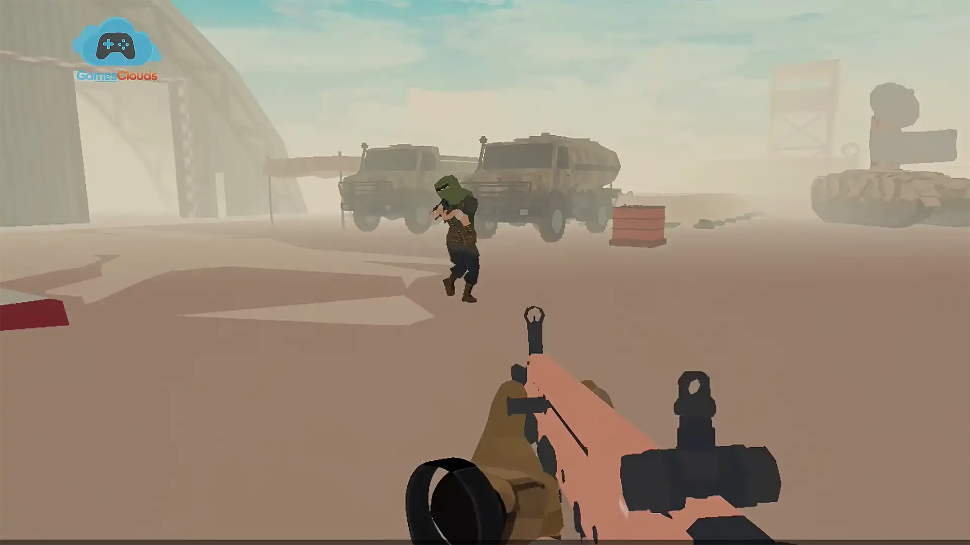 Players engage in tactical missions set across desert outposts, city ruins, and enemy bases — with smart AI behavior and dynamic firefights that feel real.